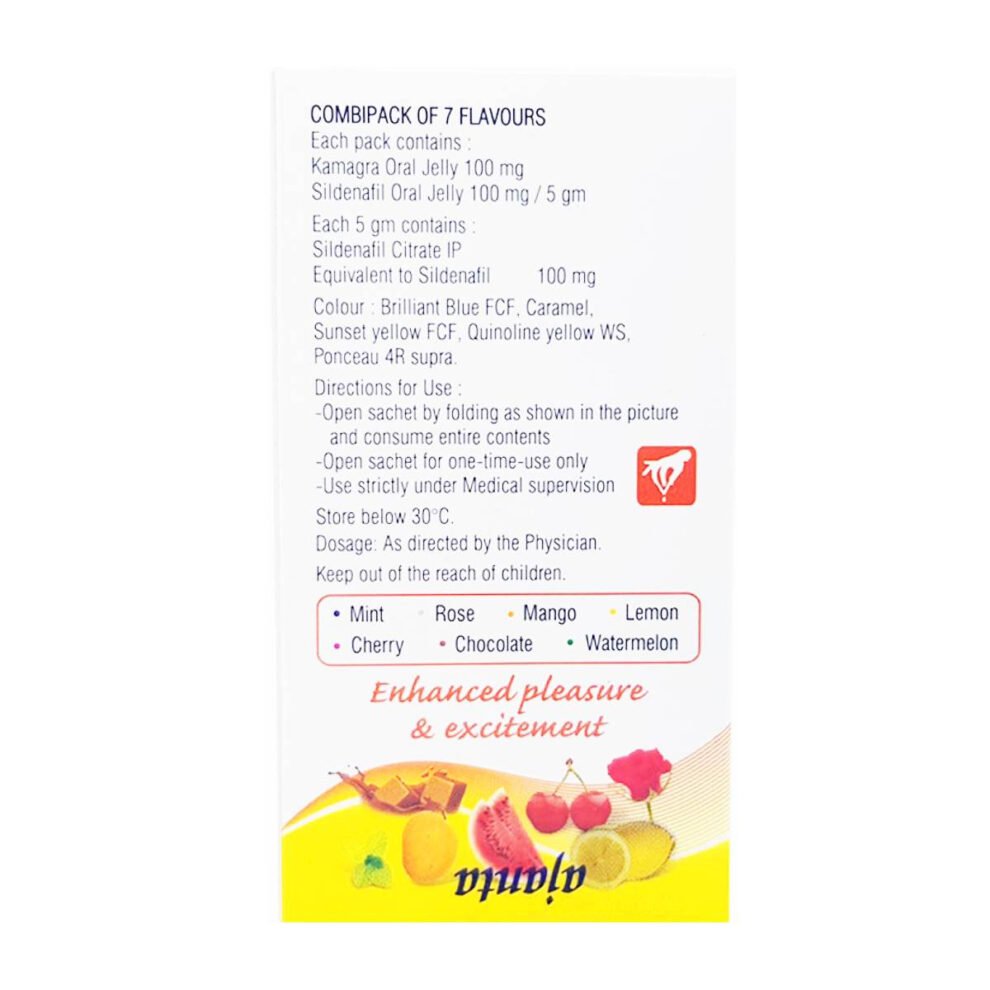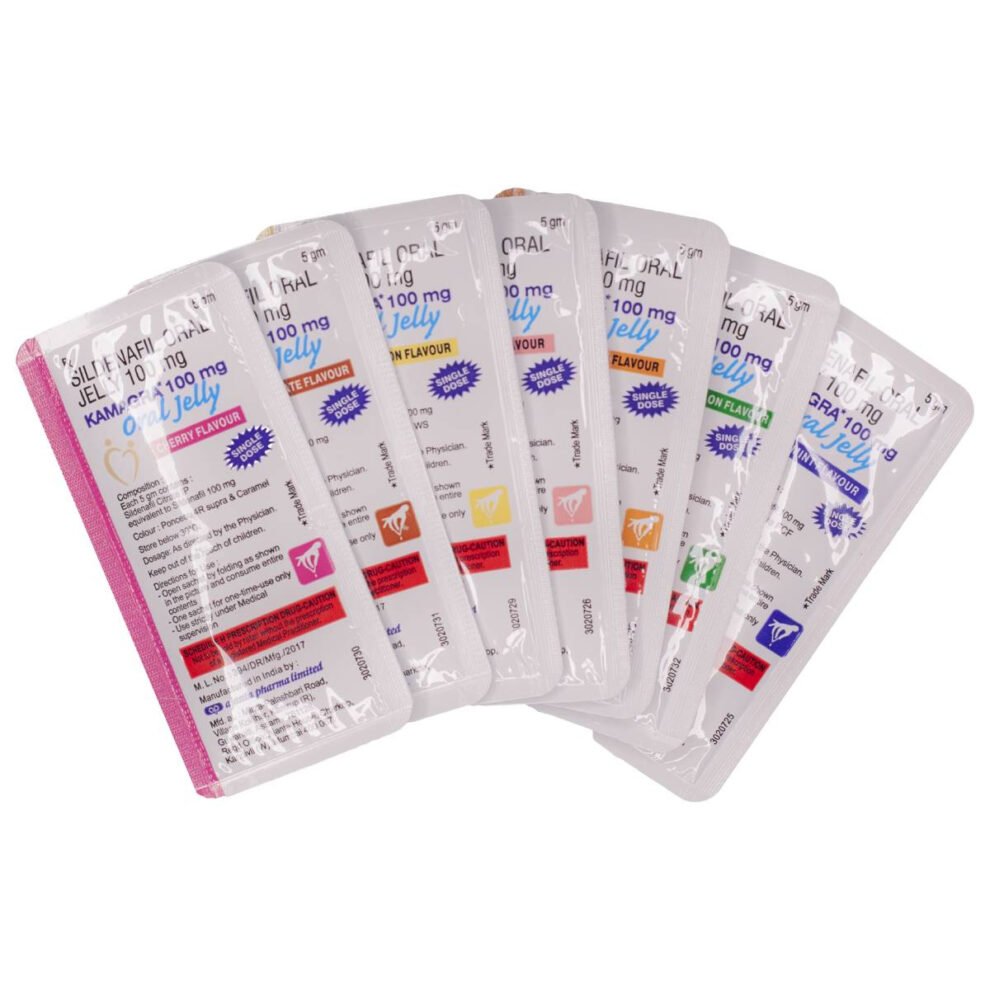 Kamagra gel (Kamagra Oral Jelly, Kamagra želé) je nejznámějším produktem známé Indické farmaceutické firmy Ajanta Pharma. Optimální řešení pro muže, kteří mají potíže s polykáním běžných potahovaných tablet. Kamagra gel obsahuje několik příchuťí jako: vanilka, ananas, jahoda, mango, pomeranč, banán, čokoláda a máta.